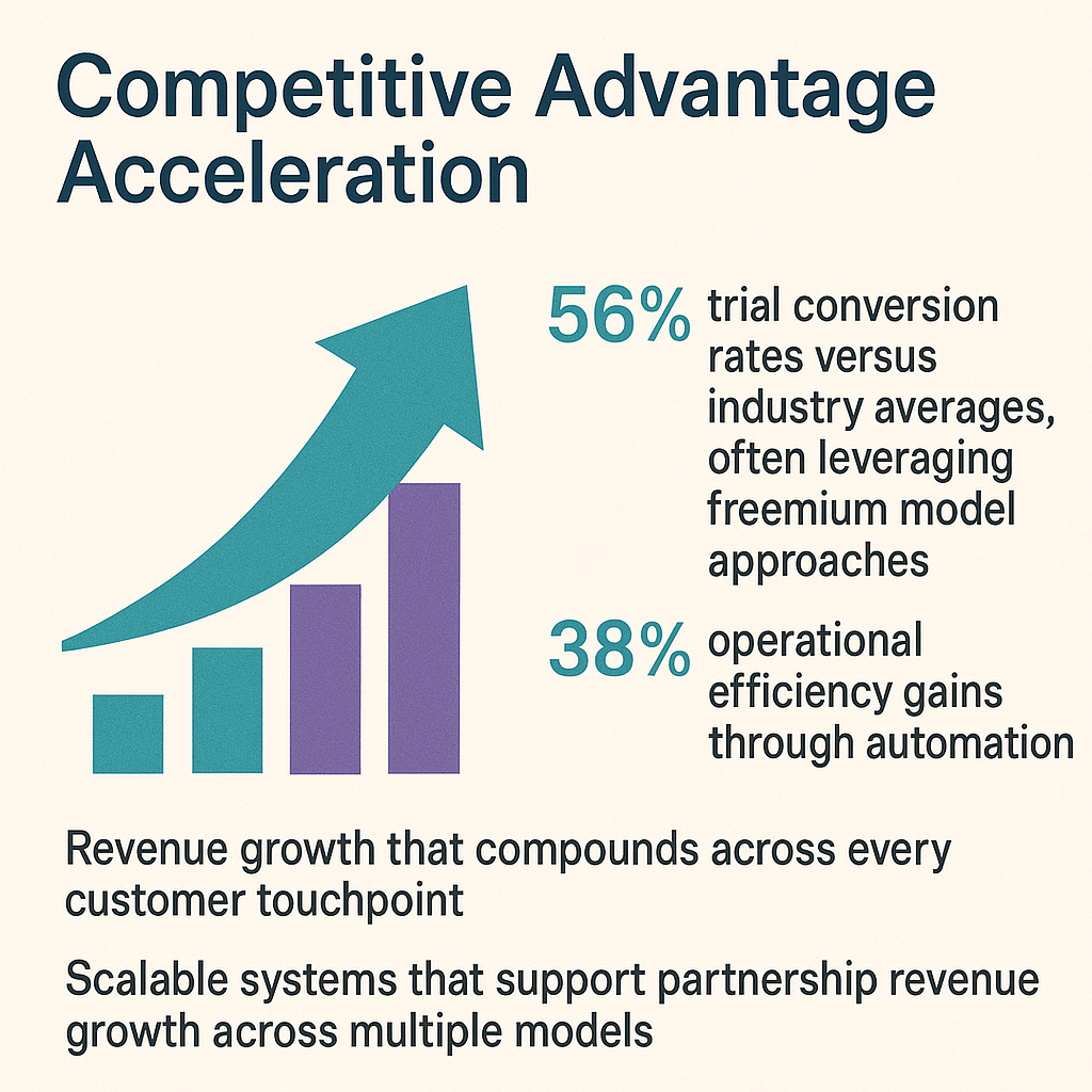 The investment pays immediate dividends: moving from 32% to 56% trial conversion rates can more than double new customer acquisition with the same trial volume. Superior trial conversion doesn't just impact customer acquisition—it creates a data advantage that compounds over time.